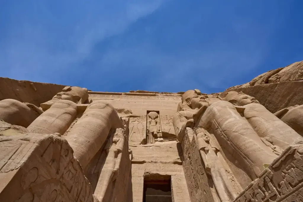 The main temple is dedicated to Ramses II himself, represented in the form of a colossal statue enthroned at the entrance. The four imposing stone statues of Ramses II majestically guard the entrance to the temple, creating a striking image that is reflected in the waters of nearby Lake Nasser.